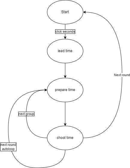 Wird die Phase "wait" angezeigt, wird die Schießuhr mit einem Klick auf die Sekundenanzeige gestartet.